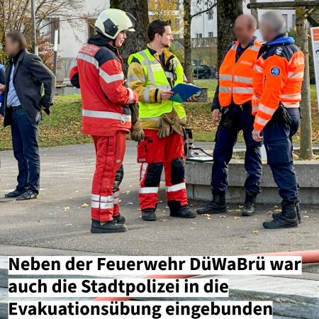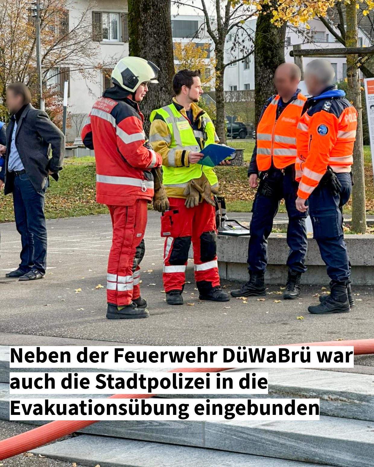 Neben der Feuerwehr Dübendorf - Wangen-Brüttisellen war auch die Stadtpolizei Dübendorf in die Evakuationsübung eingebunden.