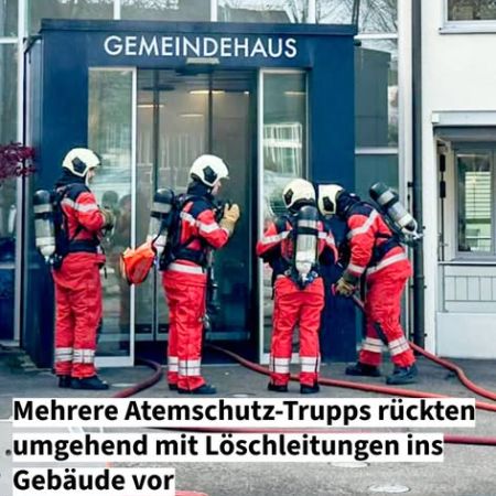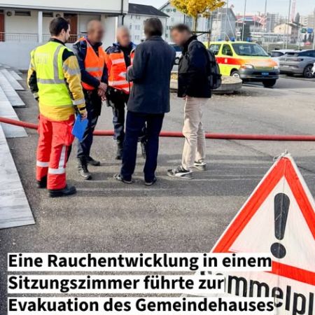 Am Donnerstagvormittag wurde im Gemeindehaus Wangen-Brüttisellen in einem Sitzungszimmer ein Brand mit starker Rauchentwicklung festgestellt. Umgehend wurden die Rettungskräfte aufgeboten und eine Evakuierung des Gebäudes ausgelöst. Mit mehreren Atemschutz-Trupps gelang es der Feuerwehr Dübendorf - Wangen-Brüttisellen schnell den Brandherd des Übungsszenario zu lokalisieren und zu bekämpfen. Nach einer anschliessenden Entrauchung des Gebäudes durften die Mitarbeiter wieder an Ihre Arbeitsplätze zurückkehren.