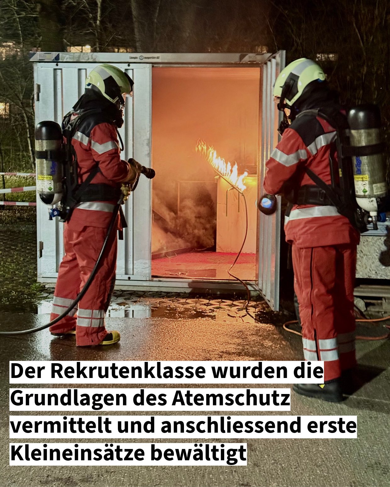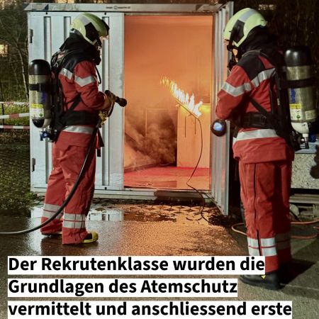 Auch die Rekrutenklasse beschäftigte sich an zwei Abenden intensiv mit dem Thema Atemschutz. Grundfertigkeiten und Handlungsabläufe wurden drillmässig verinnerlicht, sowie mit körperlicher Anstrengung kombiniert. Dies stellt sicher, dass unsere angehenden neuen Soldaten bestens auf bevorstehende Herausforderungen vorbereitet sind.