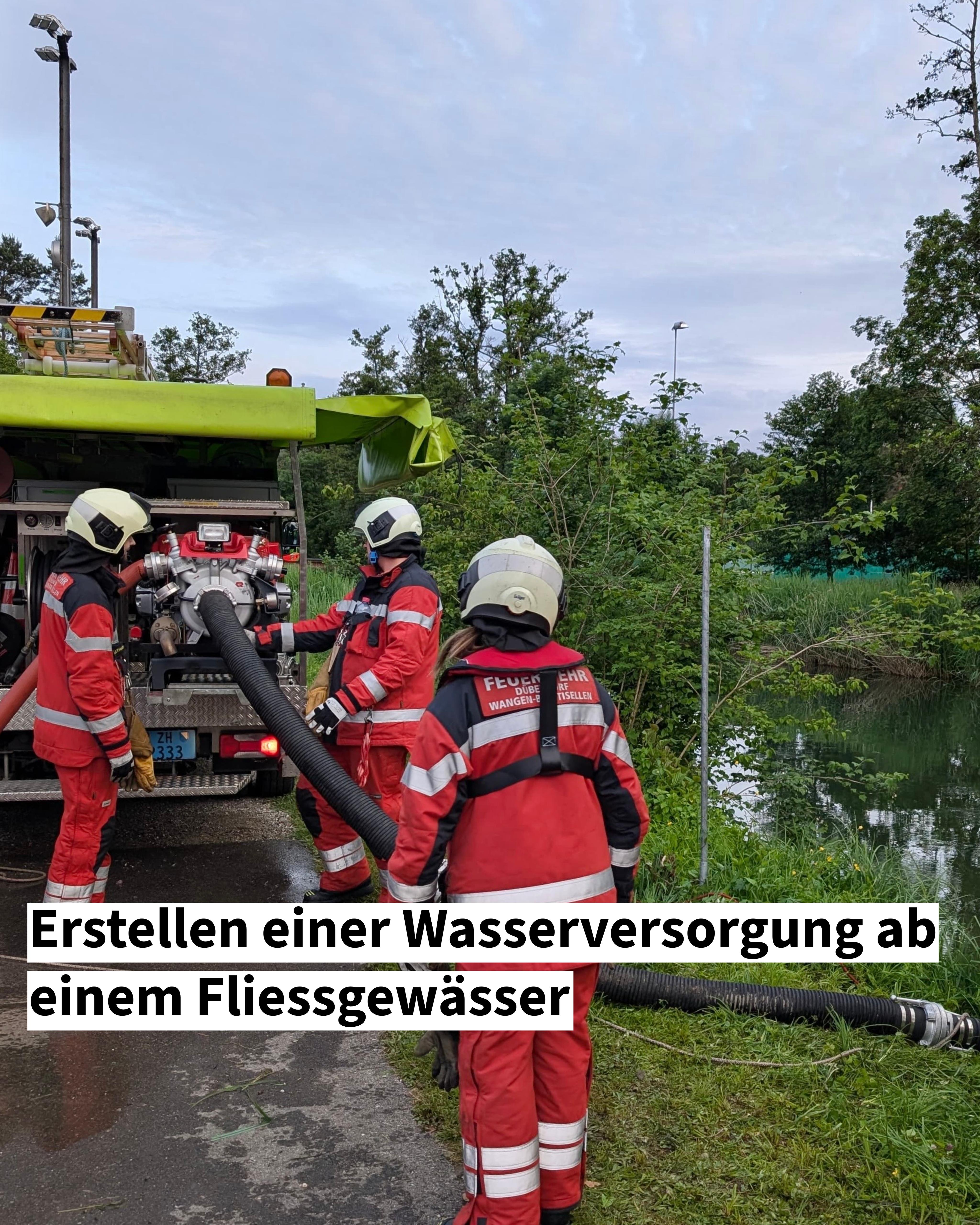 Als Mannschaftsübung des Monats Juni absolvierten die beiden Einsatzzüge der Feuerwehr Dübendorf - Wangen-Brüttisellen unter einsatznahen Bedingungen diverse Kleineinsätze. Es mussten austretenden Betriebsstoffe zurückgehalten und abgepumpt werden, diverse Pionierarbeiten mit Hebe- sowie Rohrdichtkissen verrichtet, Wasserwehr-Einsätze bewältigt, Gebäudeteile mittels Auerlüfter entraucht, und eine Wasserversorgung ab einem Fliessgewässer erstellt werden. Die Aufteilung der Mannschaft in Kleingruppen ermöglichte allen Angehörigen der Feuerwehr (AdF) aktiv teilzunehmen und persönliche Lücken in der Handhabung der diversen Gerätschaften aufzudecken und direkt zu beheben. Zeitgleich wurde die abwechslungsreiche Übung genutzt, um neuen Interessenten den Feuerwehralltag näherzubringen. Wir hoffen, möglichst viele der Besucher bald bei uns in der Mannschaft begrüssen zu dürfen!