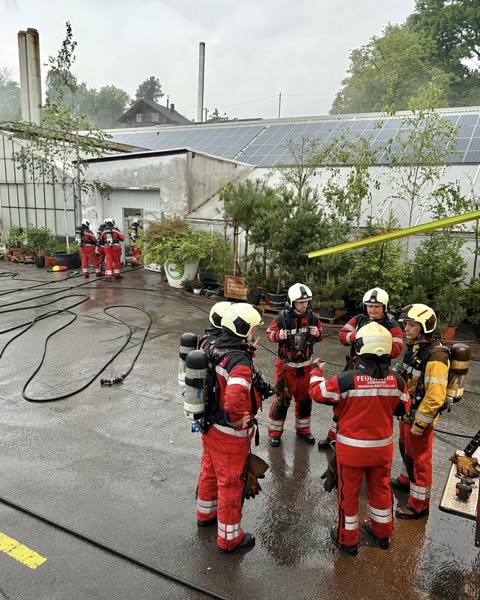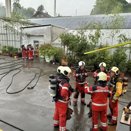 Ein Chemikalienlager eines Treibhauses in Wangen-Brüttisellen steht in Flammen, eine vermisste Person soll sich noch im Objekt befinden, dichter Rauch erschwert den Zugang. Dieses Szenario zu bewältigen war Teil der letzten Atemschutzübung der Feuerwehr Dübendorf - Wangen-Brüttisellen. Neben dem fordernden Brandeinsatz vertieften in dieser Ausbildungswoche die über 90 Einsatzkräfte an diversen Kleinarbeitsposten zusätzlich das allgemeine Feuerwehrhandwerk, selbstverständlich immer ausgerüstet mit dem über 12kg schweren Atemschutzgerät welches die Feuerwehrleute mit frischer Luft versorgt.
